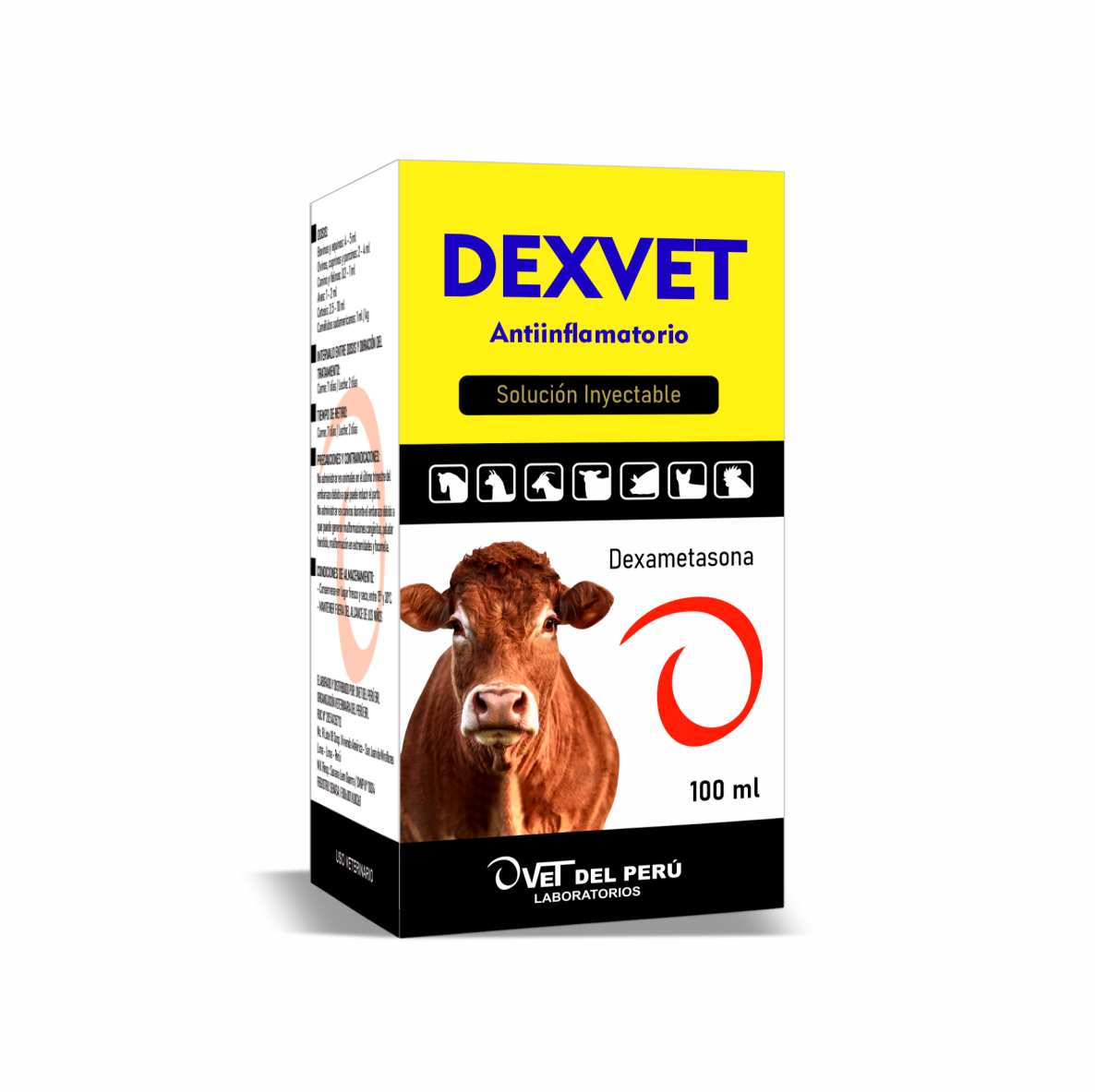Dexvet, es un antiinflamatorio glucocorticoide indicado en el tratamiento de procesos inflamatorios en general, reacciones alérgicas, cuadros de hipersensibilidad y afecciones autoinmunes. Como terapia de apoyo en diversas enfermedades. Terapéutica de emergencia en anafilaxia, shock y broncoespasmos. Dexvet, contiene 2 mg dedexametasona (21 fosfato sódico) en 1 ml.